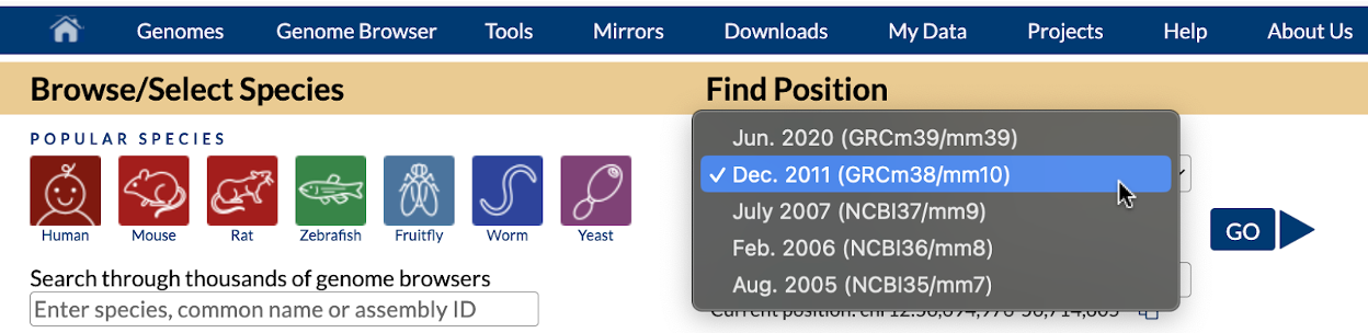Note: The Species Tree does not include all available Genome Browser assemblies. The process of adding Genome Browsers has been streamlined, enabling rapid releases but omitting certain previous features, such as inclusion in the Species Tree. To find a specific assembly, use the assembly search box.